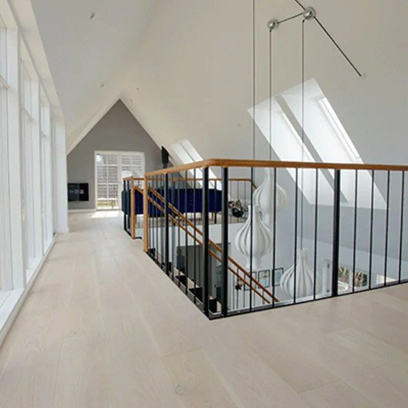 Wiking Douglas tillverkas av noggrant handplockade danska Douglasstammar. De breda plankorna är behandlade med extra vit hårdvaxolja eller vit olja, som lämnar ytan ljus men ändå framhäver träets vackra rödaktiga ådringar. Samtidigt har plankorna avrundade kanter som framhäver bredden. Ett elegant, varmt, ljust plankgolv som ger rummet harmoni.