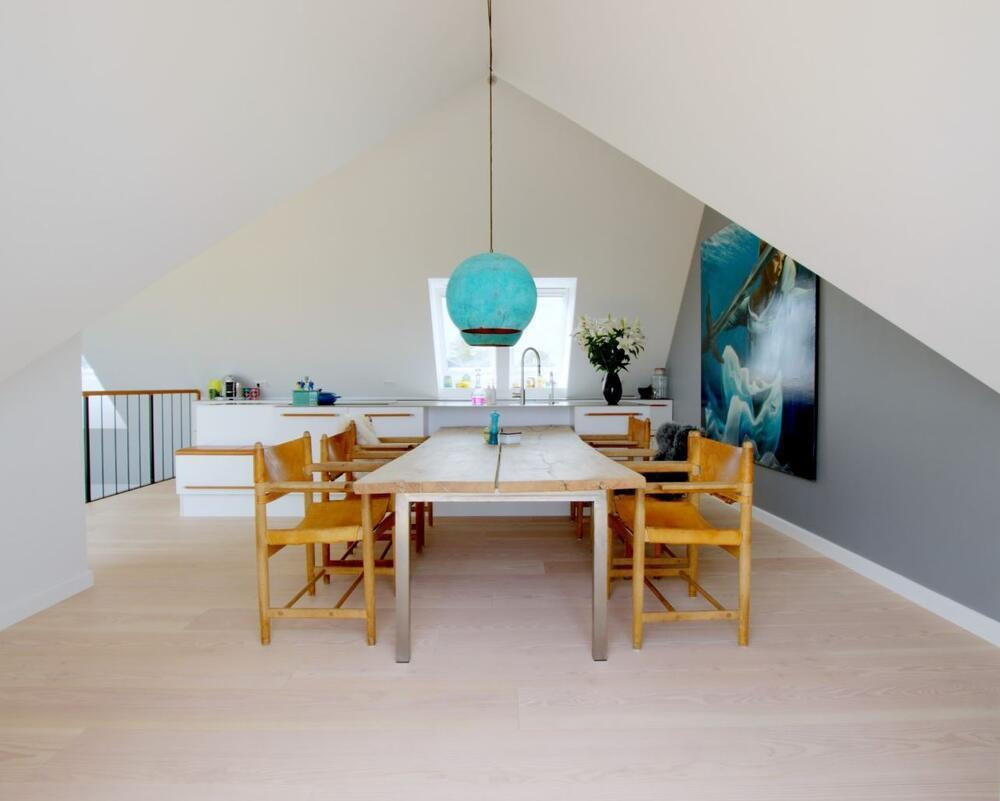 Wiking Douglas tillverkas av noggrant handplockade danska Douglasstammar. De breda plankorna är behandlade med extra vit hårdvaxolja eller vit olja, som lämnar ytan ljus men ändå framhäver träets vackra rödaktiga ådringar. Samtidigt har plankorna avrundade kanter som framhäver bredden. Ett elegant, varmt, ljust plankgolv som ger rummet harmoni.