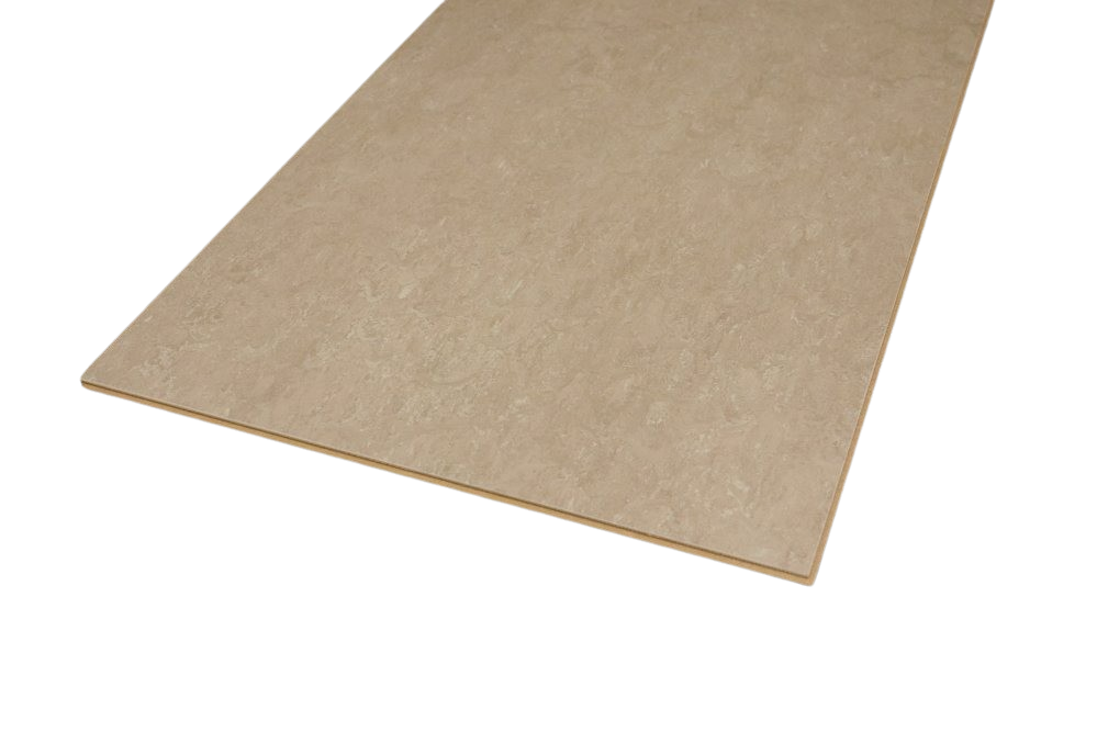 Linoleumplattorna är uppbyggda med 2 mm korkbaksida, 6,8 mm HDF mellanlager och 1,2 mm slitstarkt linoleumtopplager. På grund av korkbaksidan behöver inget ytterligare underlag installeras under golvet, endast fuktspärr där det är nödvändigt.